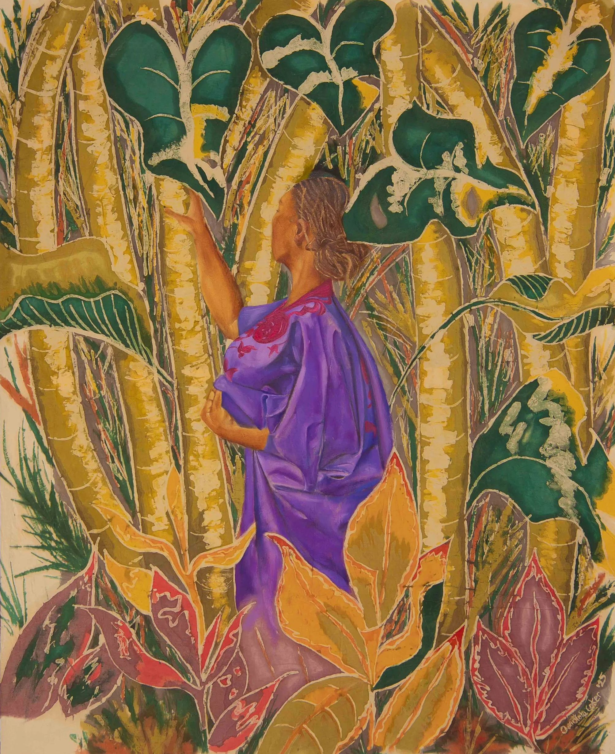 In My Garden (Home) (2025)Batik-Dyed Canvas, Oil & Acrylic40 x 49 inches SOLDat In Bloom, solo exhibition